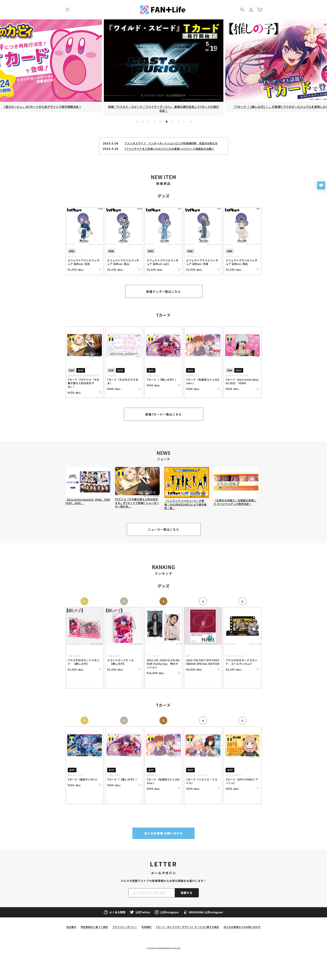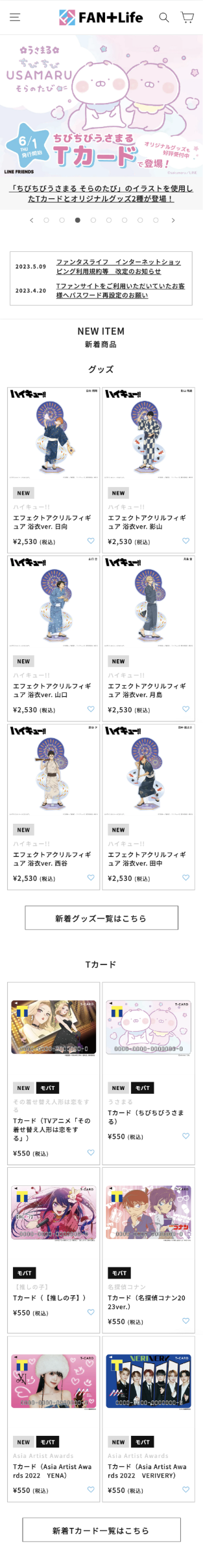 FAN+Life(旧Tファンサイト)は、カルチュア・エンタテインメントグループが運営する、アニメやキャラクター・アーティストとコラボしたTカード(キャラクターデザイン)の公式ECサイトです。