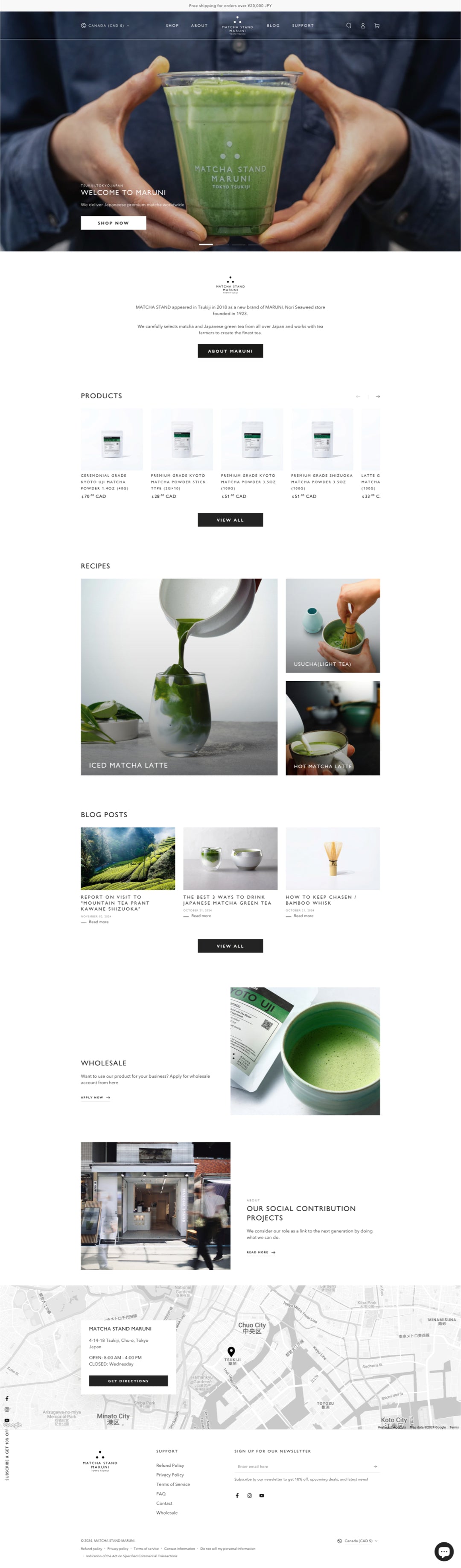 MATCHA STAND MARUNI は、築地にある実店舗を拠点に、グローバル市場に日本の高品質な抹茶を届けるブランドです。インバウンド観光消費の増加に伴い、外国人観光客を効率よくオンラインストアへ誘導し、さらなる成長を目指すため、Shopify ストアのリニューアルを実施しました。オンラインでの購買体験を向上させるとともに、Klaviyoを活用した効果的なマーケティングの導入を目指しています。