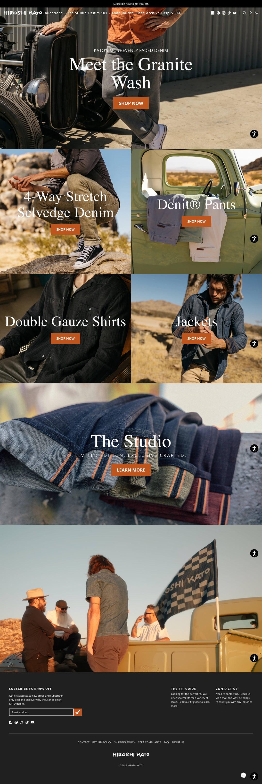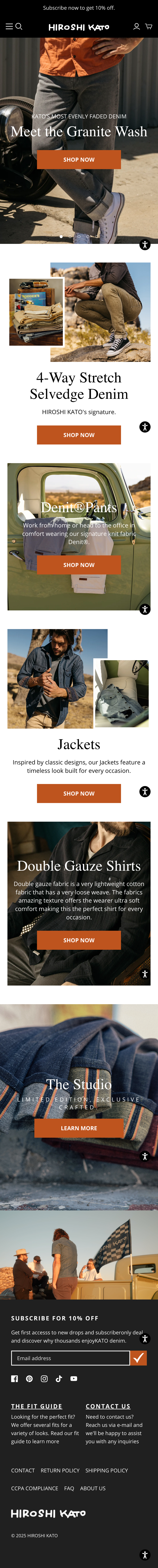 We provide Shopify operation support for the U.S. store of "HIROSHI KATO," a men's denim brand that promotes "Born in Japan, made in LA" and brings the quality of Japanese denim to the American market.