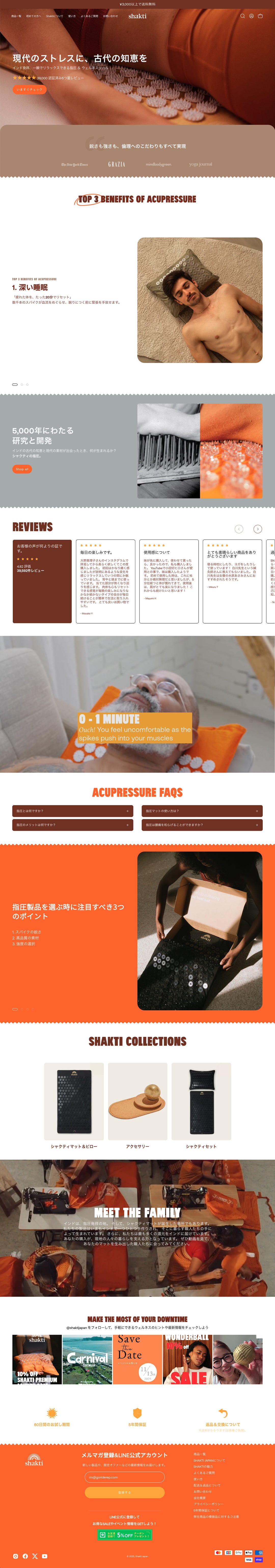 インドの伝統的な「針のベッド」を現代的に進化させたウェルネスツール、「シャクティマット」をはじめとしたシャクティ製品で、鍼・指圧・マインドフルネスがもたらす効果や心の安らぎを、日本の皆さまにお届けしています。